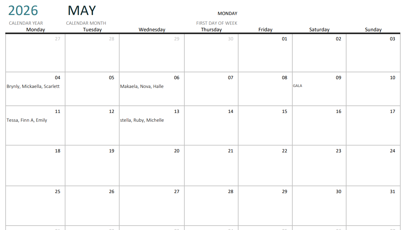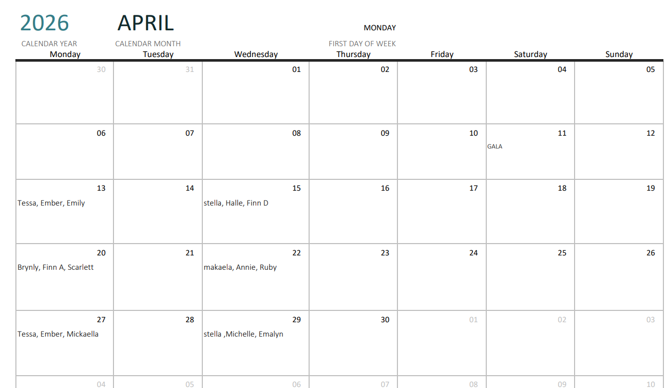Program Assistant Schedule